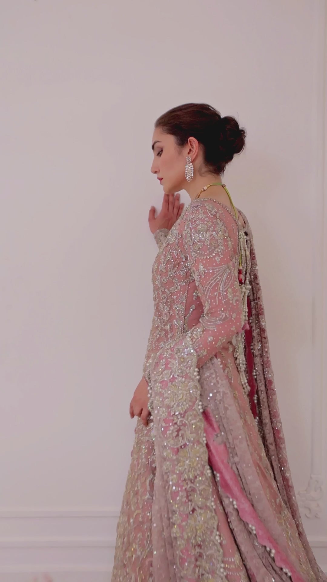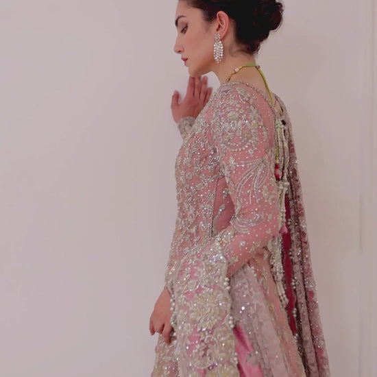 Embrace the dawn of your new beginning with "Aanya," a bridal masterpiece that blends delicate beauty with ethereal elegance. This light pink ensemble boasts a meticulously crafted farshi lehenga, its rich jamawar fabric cascading gracefully in shades of pink. Aanya's magic lies in the intricate dance of light and texture. Silver embroidery adorns the entire outfit, shimmering like moonlight on a blush rose. Each stitch is a testament to age-old craftsmanship, whispering stories of heritage and tradition. The captivating beauty continues with the farshi part of the lehnga. Exquisite pink jamawar, adorned with three shades of appliqué, creates a mesmerizing layer of depth and detail. Aanya is more than just an outfit; it's a timeless expression of love and light. This breathtaking ensemble is perfect for the bride who desires a modern twist on tradition, all while shimmering in the glow of her special day.