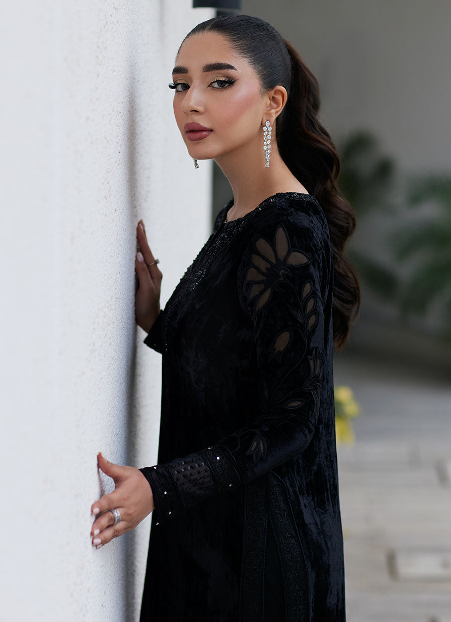 Cut from pure onyx velvet, the Afrin shirt boasts a fully hand embellished neckline. Subtly shimmering Swarovski crystals and sequins adds an eye-catching mystique.