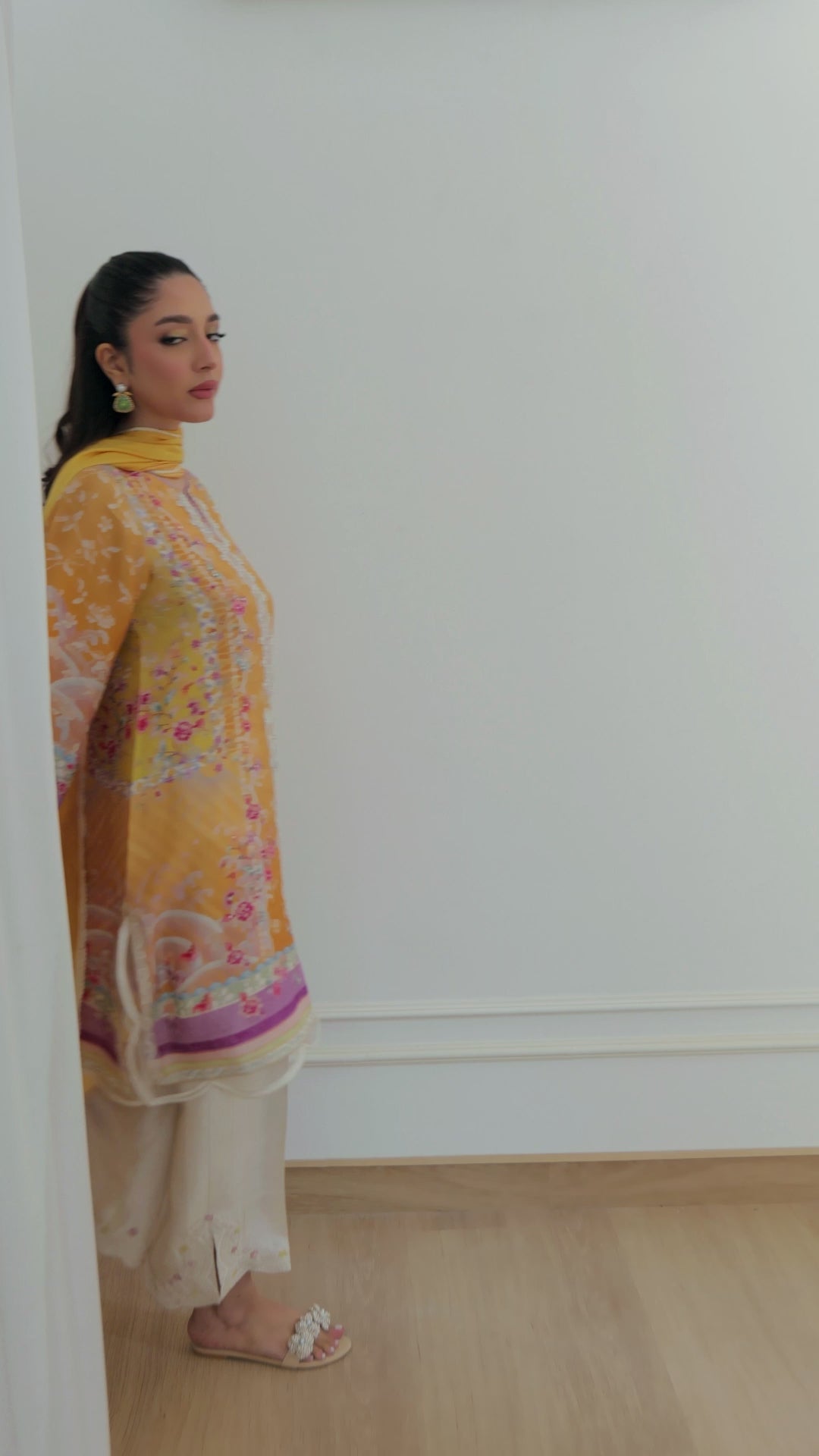 The easy breezy ,shirt is paired with a pure medium silk dupatta in bright printed borders.