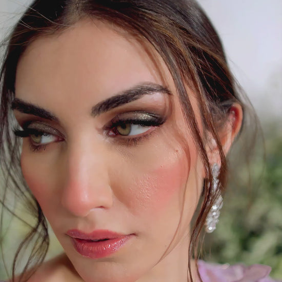 The pure Charmeuse floor length pre-draped skirt with flowy pleating accentuates the body and add gracefully mesmerizing movement to the garment.