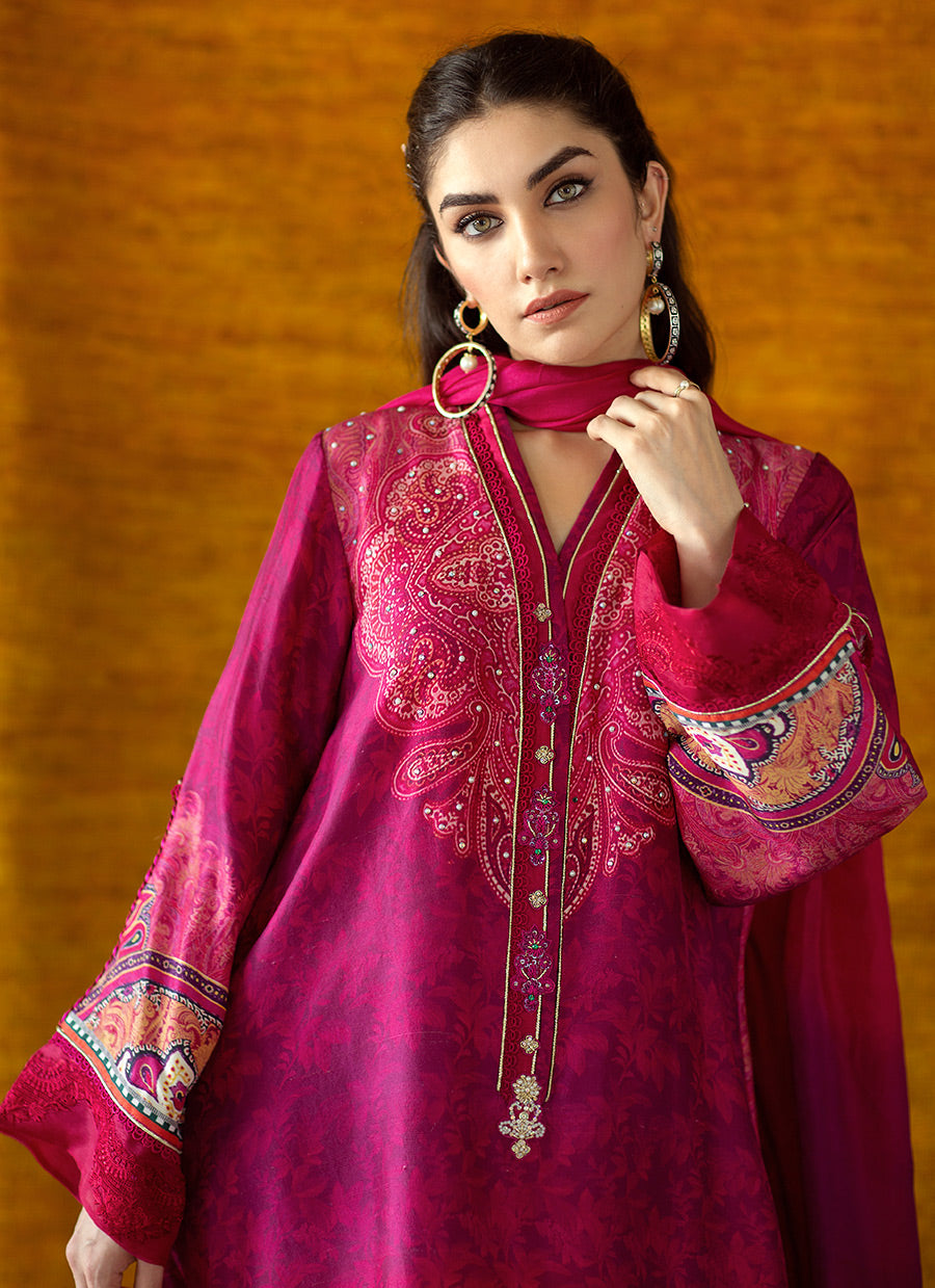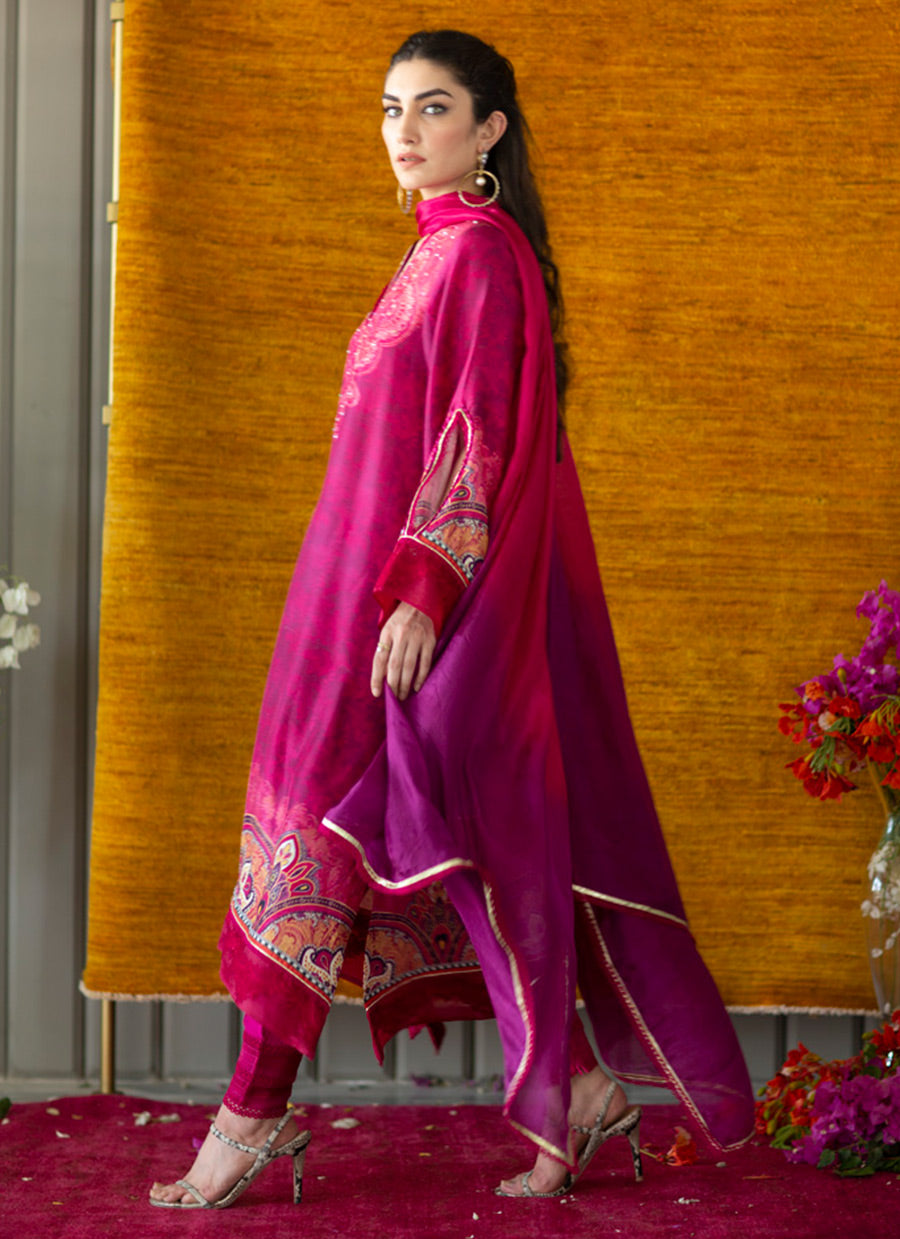 Signature FTA details, consisting of pearls, hand worked floral motifs and just a hint of gota add a subtle sparkle to your look while the coordinating dip dyed, ombre dupatta in pure medium silk gives a graceful flair! Finish off your ensemble with our pants (as shown in the picture) to have heads turning no matter where you go.