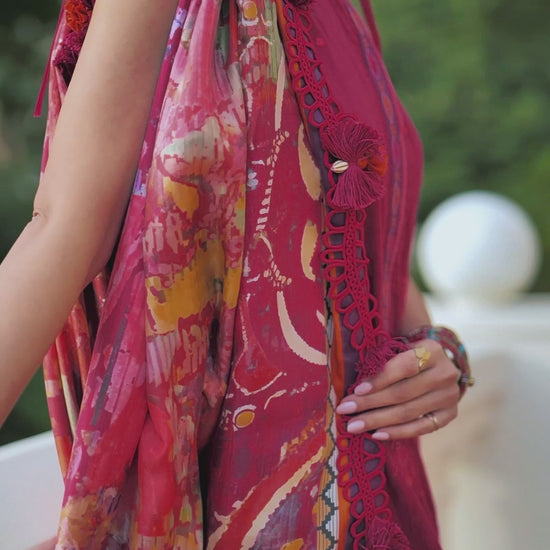 Sure to be a classic this spring. An irresistible berry shirt with meticulously designed modern embroidery in eye catching tonal hues. The accompanying luscious pure silk dupatta in stunning, bold hues brings an incredible pop of colour to the ensemble, the pure jacquard pant will keep you comfortable day or night!Betty Berry is one of those must-have ensembles that ensures you stand out where ever, you choose to wear it.