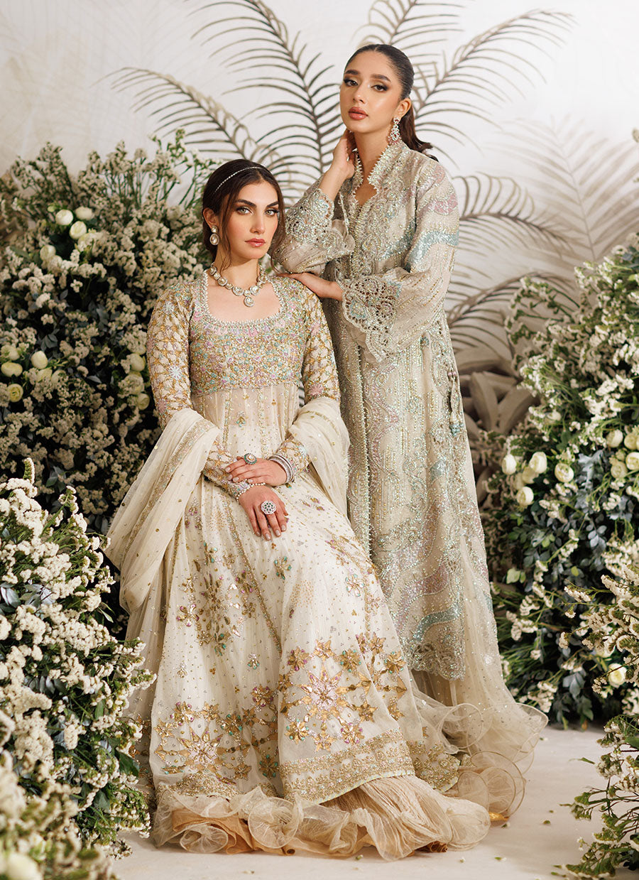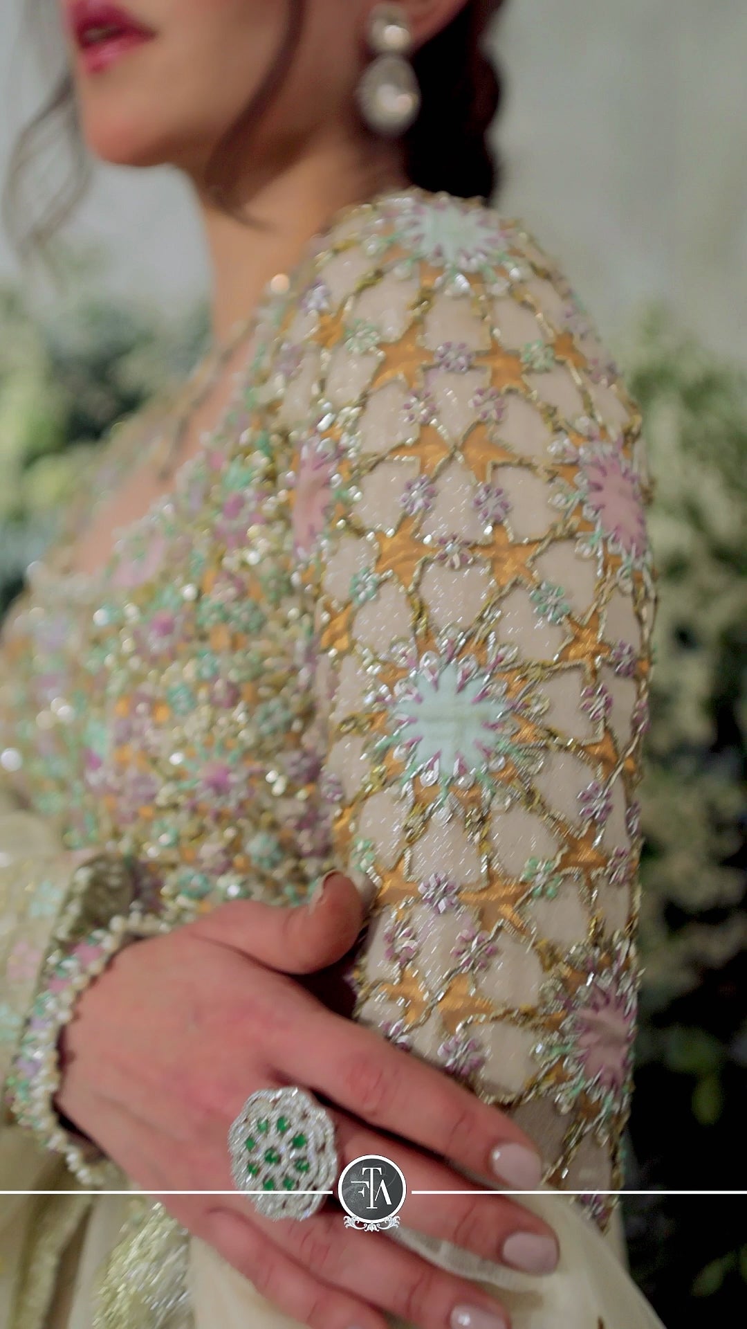 Farah Talib Aziz evokes feelings of romance, unabashed femininity and the grandeur of times past with majestic, flowing silhouettes and cascading dupattas.