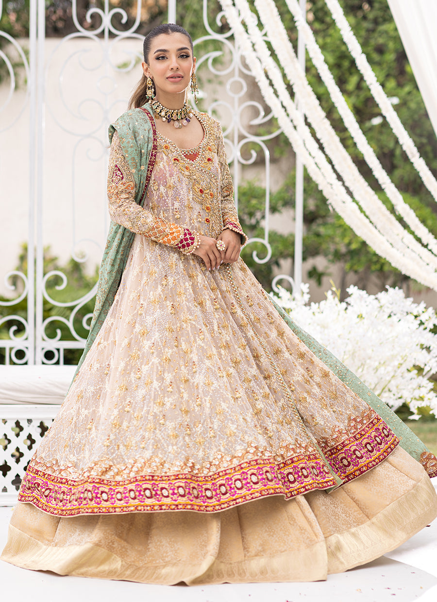 The exclusively woven jaamawar gold lehnga adds a stunningly graceful flair to this must-have ensemble, made to love and cherish for years to come.