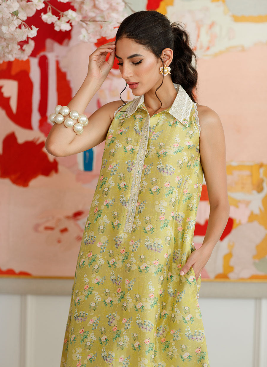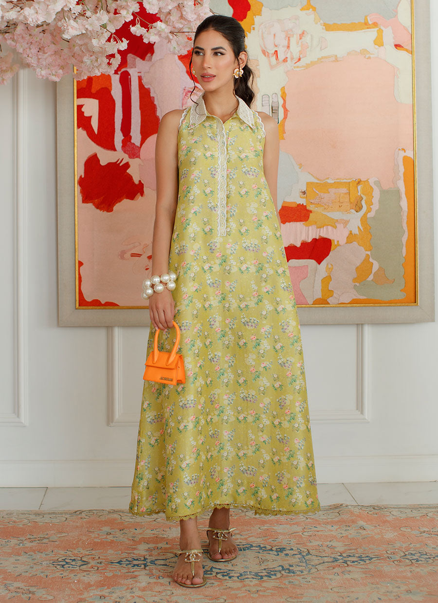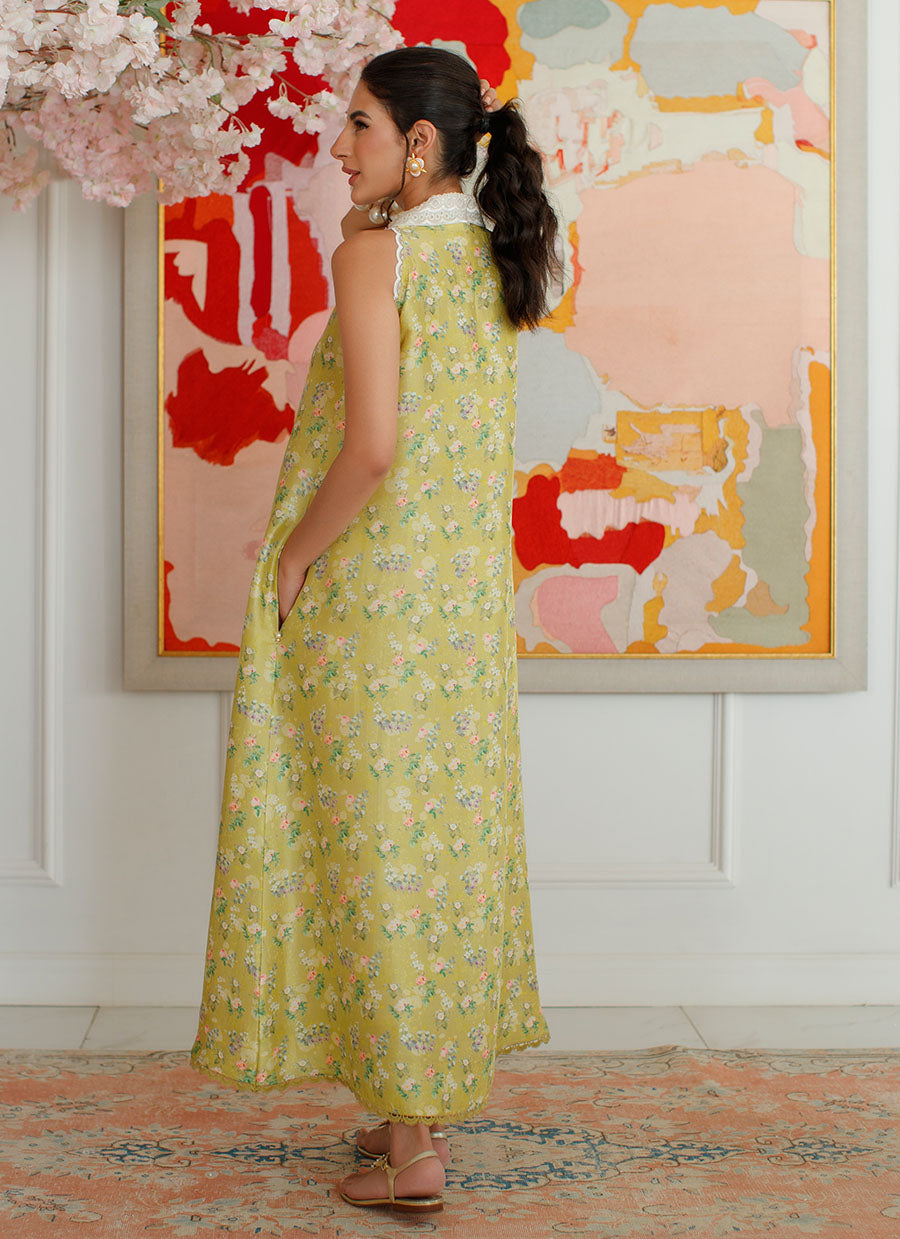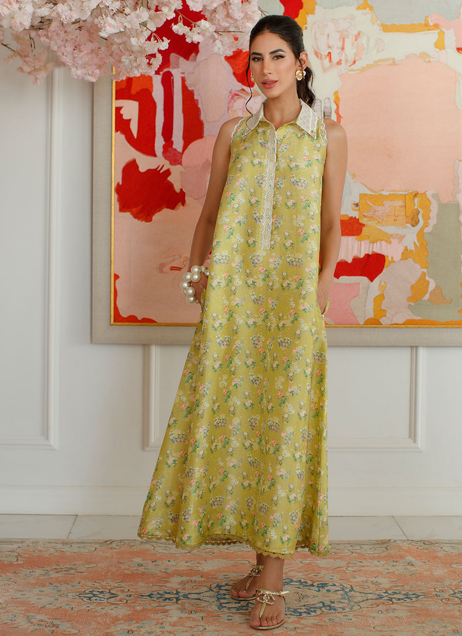 Cut from Pure Raw Silk, Ella Bella Kiwi is a refreshing citrusy kiwi green, printed with blissfully delicate florals. The ankle length hem is adorned with a delicate lace, while the collar is made from eyelet embroidery on silk. All the elements of this outfit come together to create a stunning ensemble, brimming with a modern simplicity.