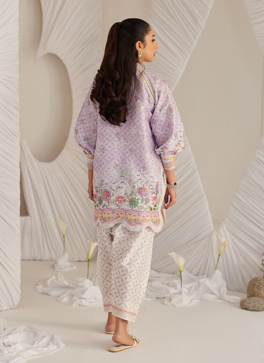 A canvas of soft lavender raw silk, is printed with delicate florals. The romantic, forever flattering silhouette has an elegant neckline, adorned with delicate hand-made floral motifs, pearls, sequins and unmissable organza detailing. The voluminous statement sleeves add to the magical, whimsical feel of the shirt.