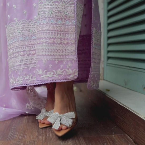 Larissa Lavender Embroidered Column Shirt with Organza Dupatta