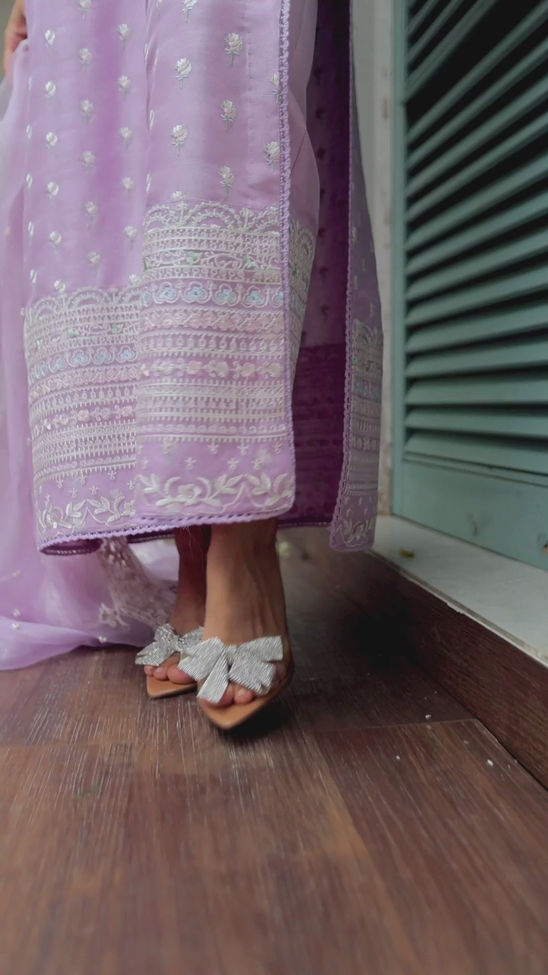 The captivating cool toned lavender hue of this outfit makes it your ultimate solution to all occasions, big or small. Cut from pure raw silk, exclusively designed to give the most universally flattering fit. Intricate embroidery along the universally flattering talpat neckline makes this outfit impossible to resist! Sweet little floral motifs all over the shirt give it a lovely, fresh spring vibe.