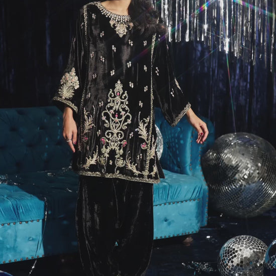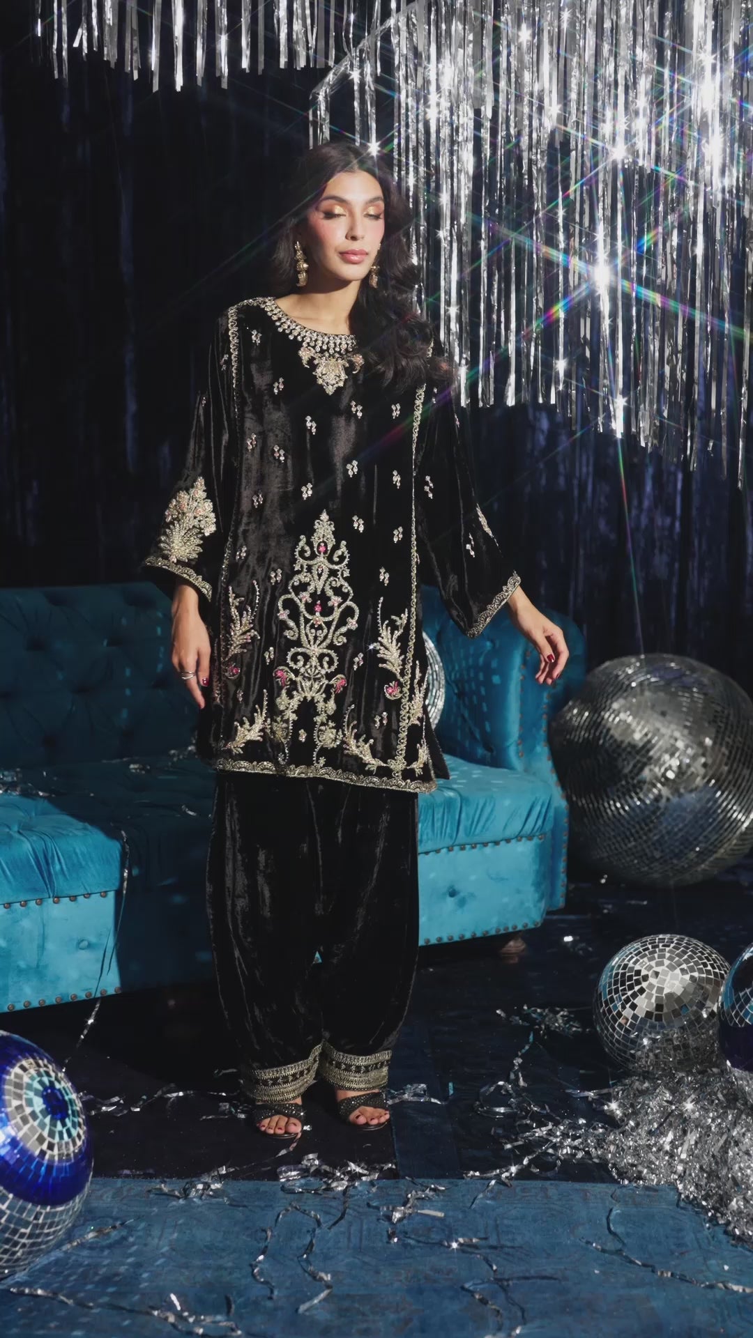 Straight velvet shirt paired with a coordinating velvet shalwar
