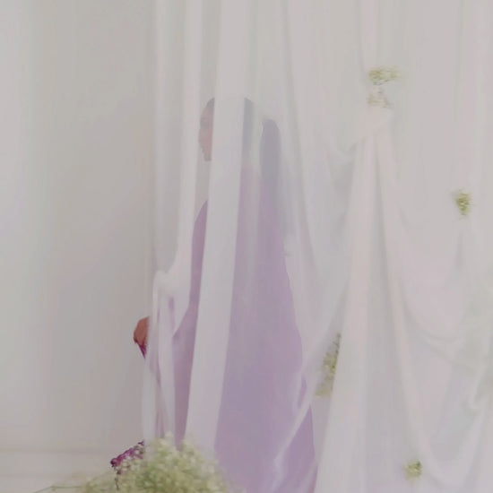 An organza dupatta is adorned with embroidered with delicate summer blooms and trimmed with a scalloped lace to bring the look together with easy elegance.