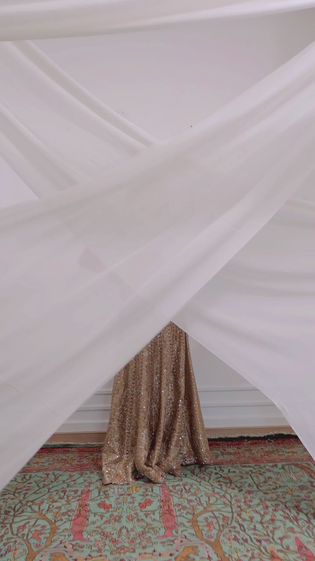 Embodying the fiery embrace of the sun at twilight, Lila evokes a captivating dance of color and texture. Deep red choli cascades in a symphony of curves, a dancer's dream realized. A contrasting golden lehenga, woven with shimmering threads, whispers tales of modern opulence. Lila's magic lies in the intricate dance of tradition and contemporary grace. Meticulous hand work adorns both bodice and skirt, each stitch a poem in shimmering thread. Here, heritage meets innovation, whispering stories on the breeze. This exquisite ensemble is a timeless fusion, perfect for etching a night in memory. Let crimson embrace your form and gold illuminate your path.