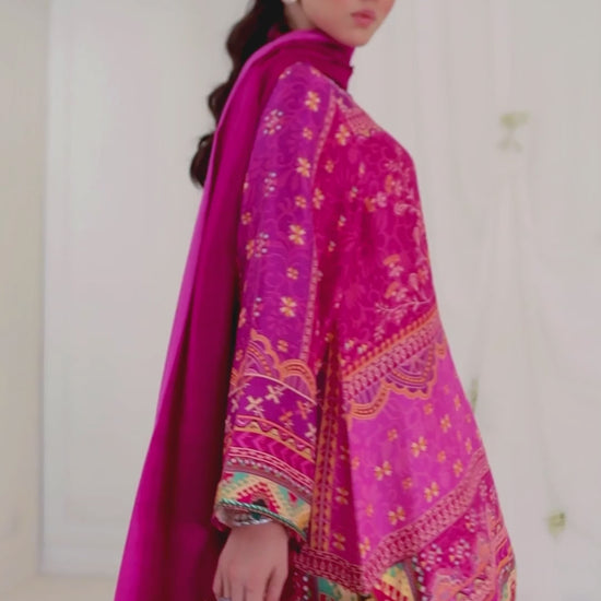 The graceful relaxed fit shirt is paired with a coordinating, pure medium silk dupatta with lace detailing.
