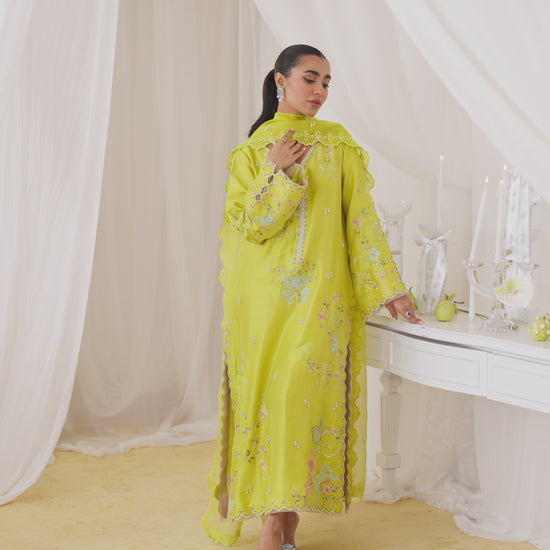 Marija Kiwi Green Embroidered Shirt And Dupatta