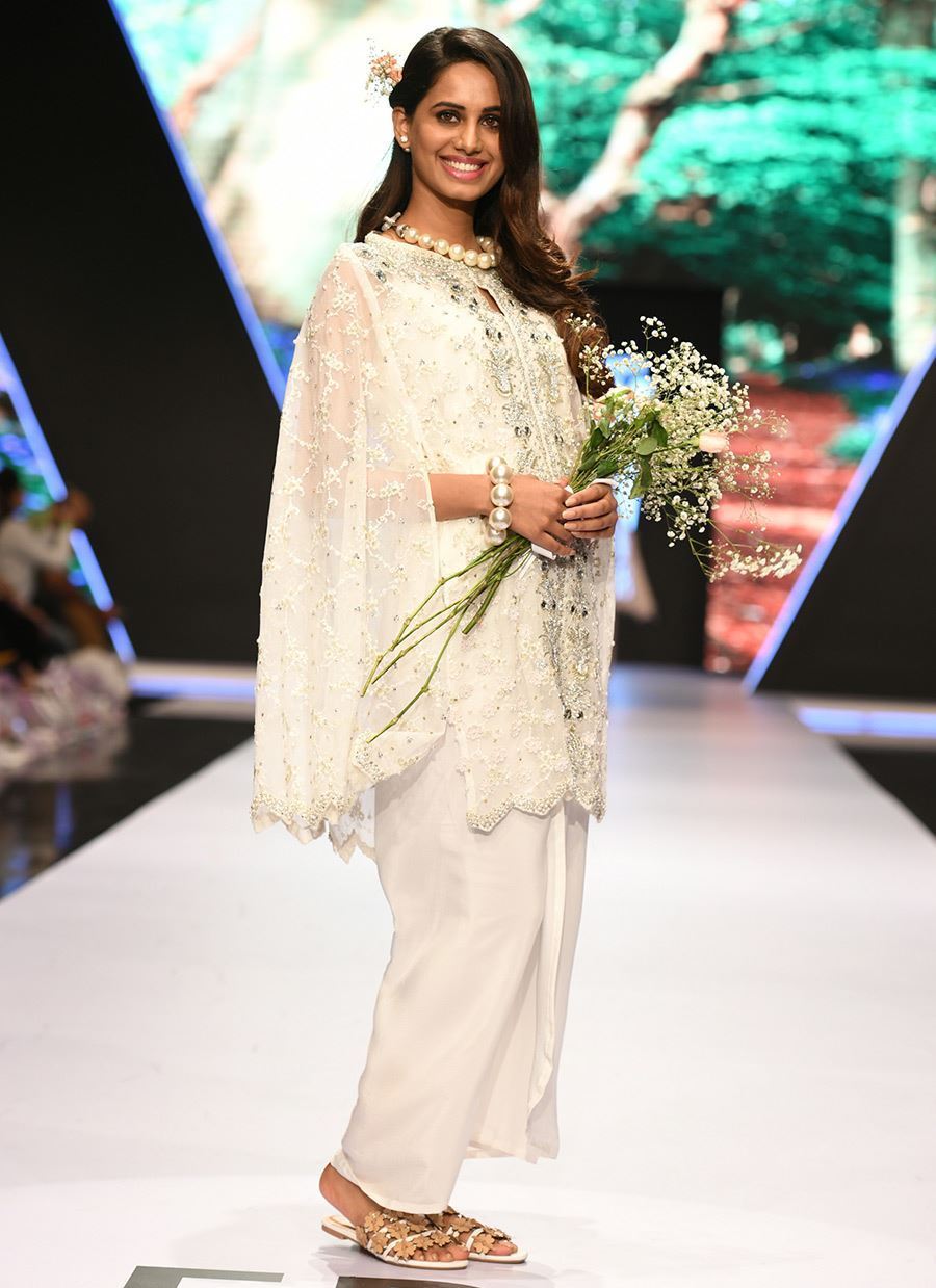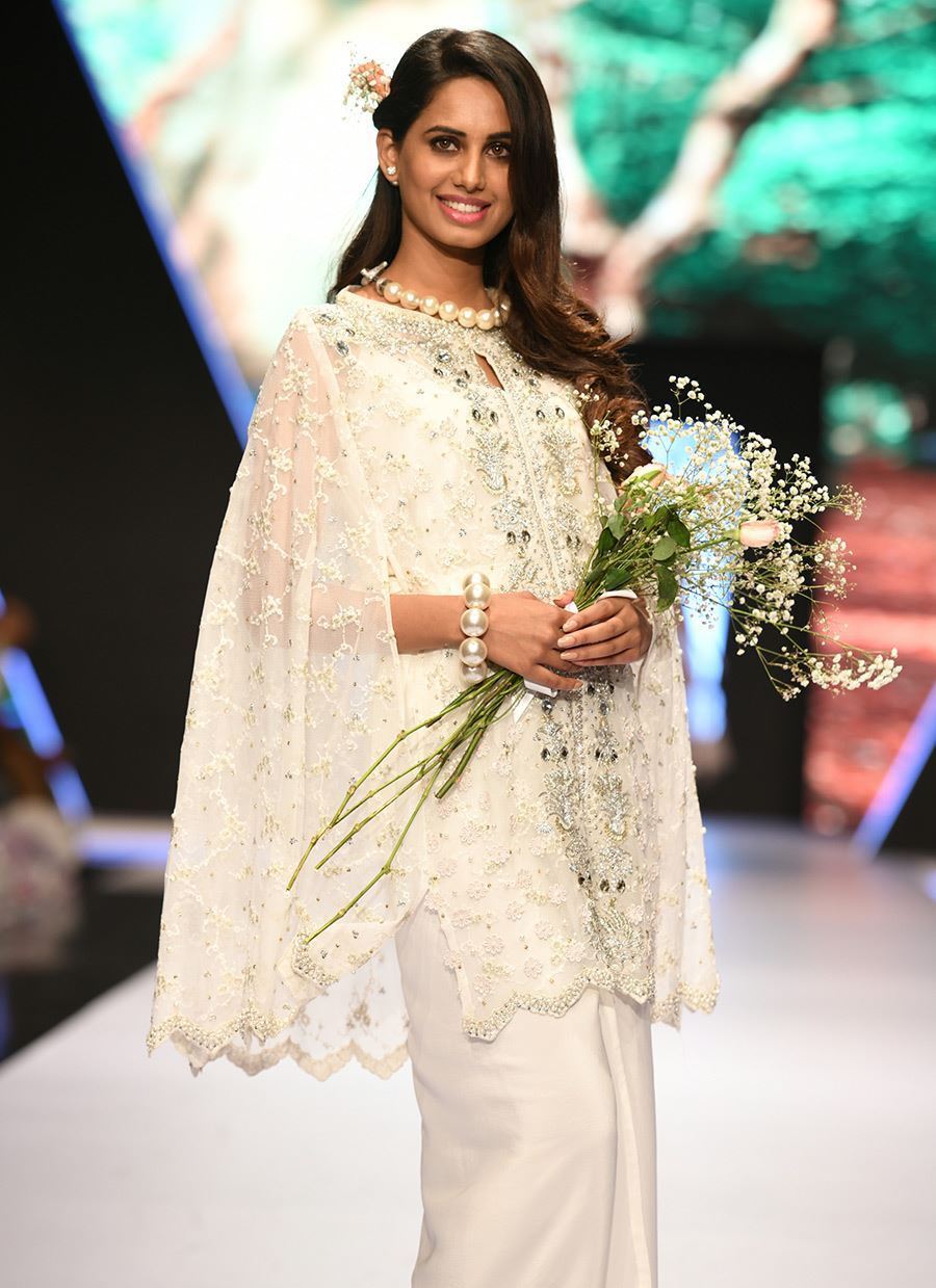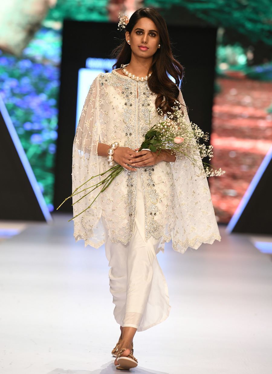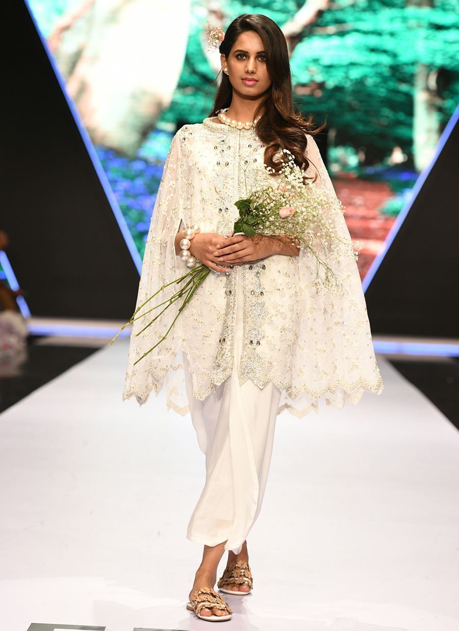 Embellished cape worked with pearls and ticky stones.