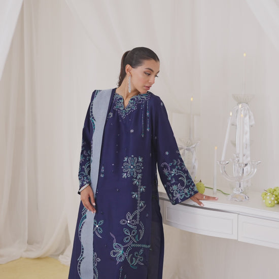 Nada Ink Blue Embroidered Shirt And Dupatta