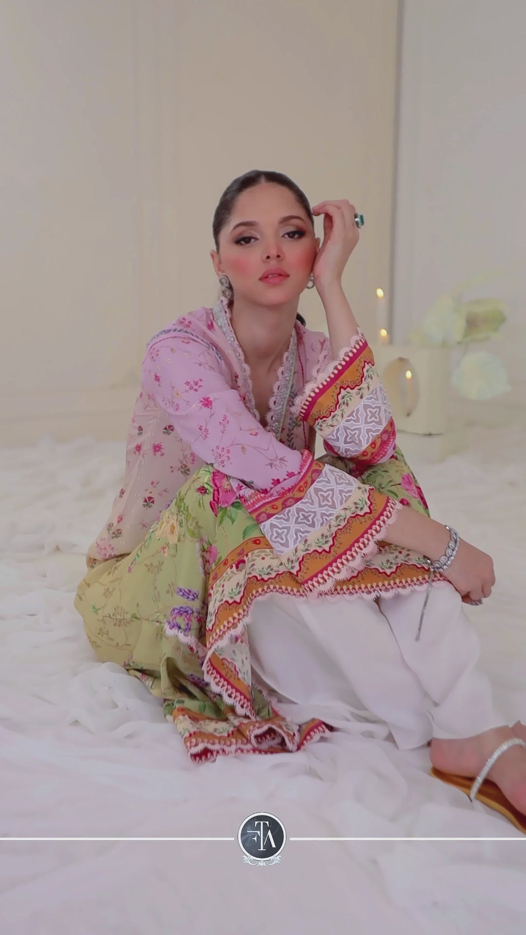 Infused with the signature FTA aesthetic, our new prints have the perfect pastel hues to make your heart skip a beat!! Cut from light breathable crepe, the kaftan is given a striking ombre treatment, with a gorgeous petal pink that flows seamlessly into an irresistible green hue. Whimsical florals bloom daintily all over the shirt, making this an absolute must have. The relaxed, much loved silhouette has a universally flattering neckline, adorned with delicate hand-made floral motifs, pearls and sequins, add an easy timeless elegance.