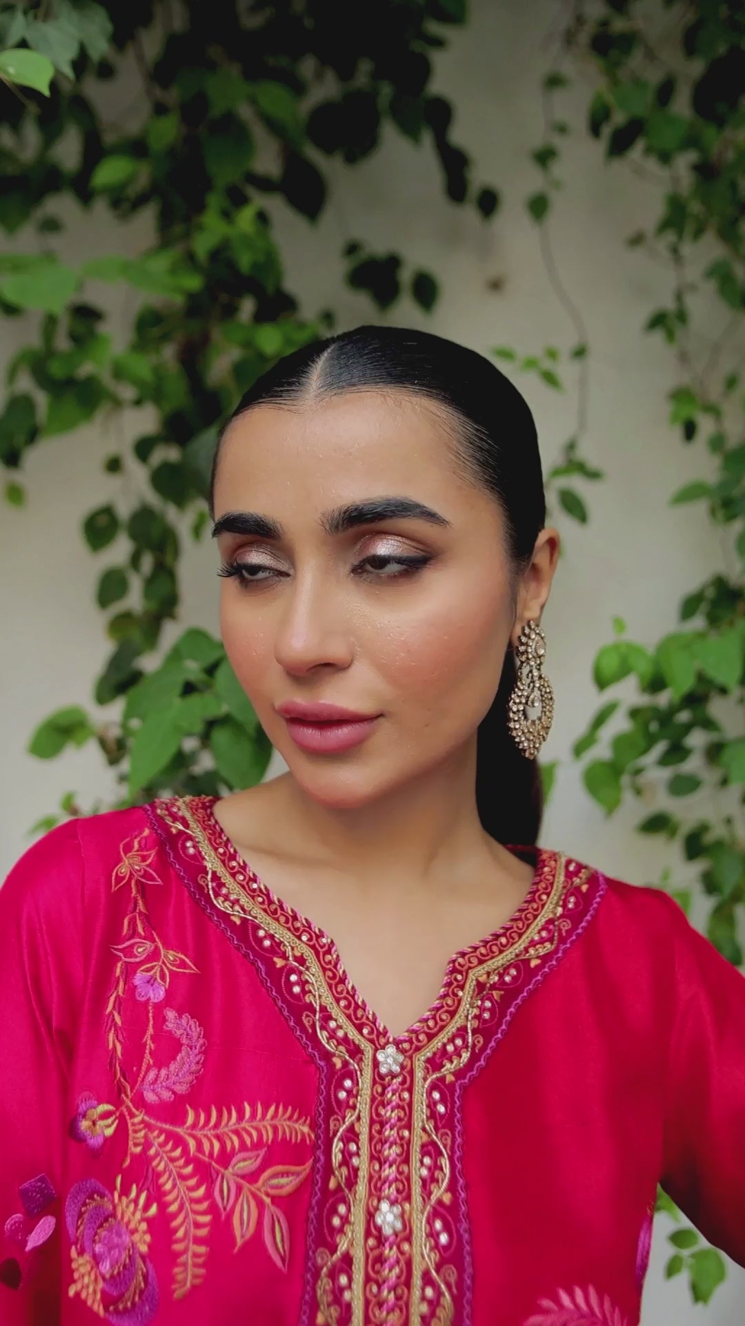 A coordinating organza dupatta with embroidered borders and floral motifs completes your look.