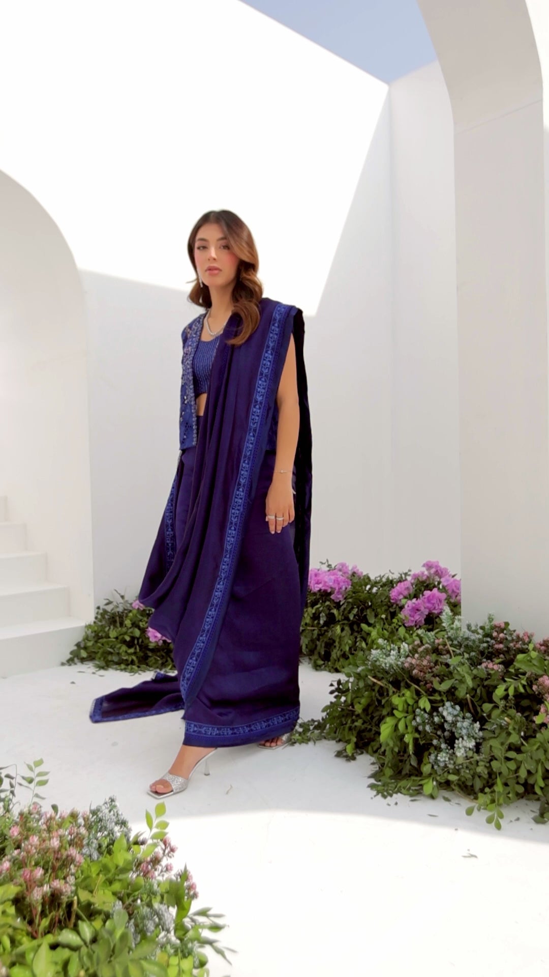 Meet the new age saree, cut from Charmeuse silk and pre-draped for your ease, this is going to become your forever favourite!!