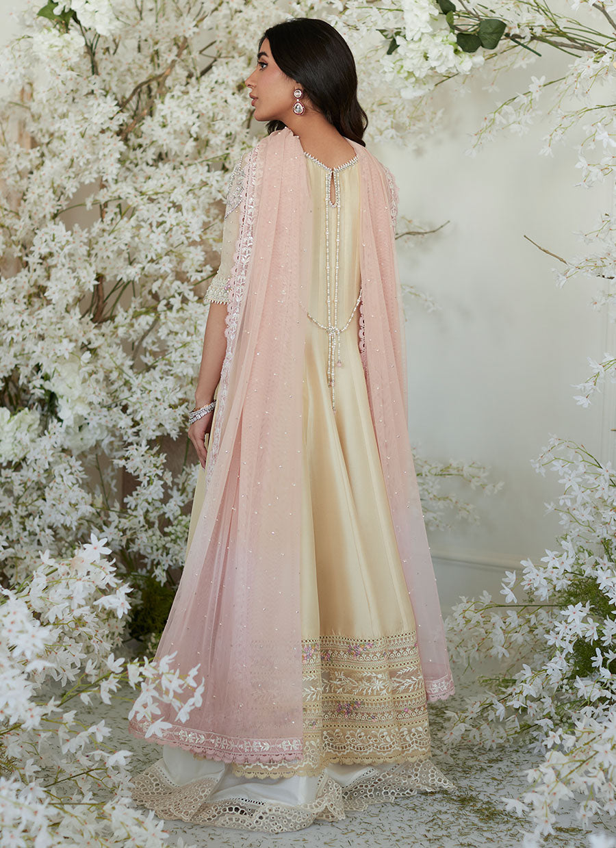 The dreamy pink tulle dupatta, trimmed with sequin embroidery and scalloped lace; adds a distinctly elegant flair to your final look. Pair your ensemble with our pure silk, wide leg schiffli pants and some statement earrings for that classy, polished vibe.