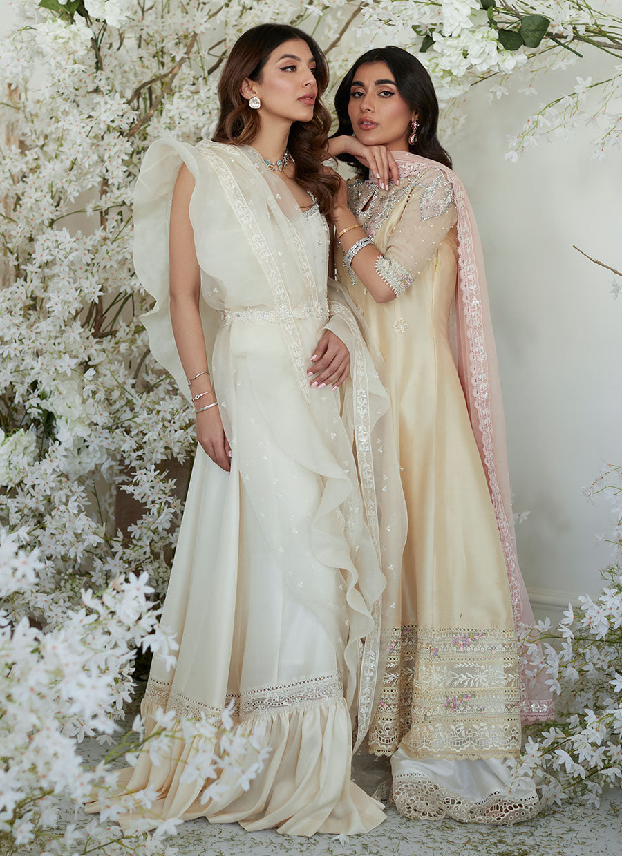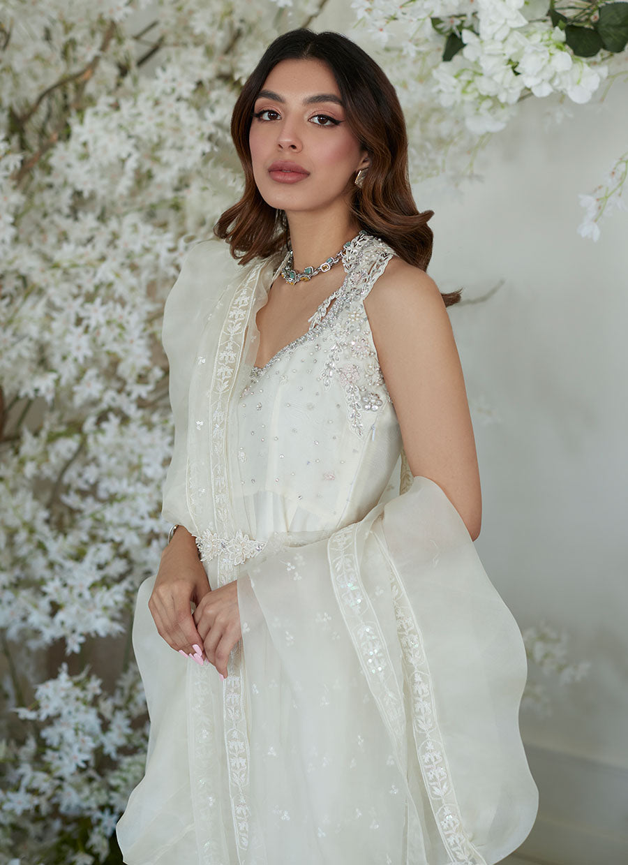 A beautifully pre-draped, organza dupatta trimmed with a soft, romantic frill is what makes this a must have outfit.