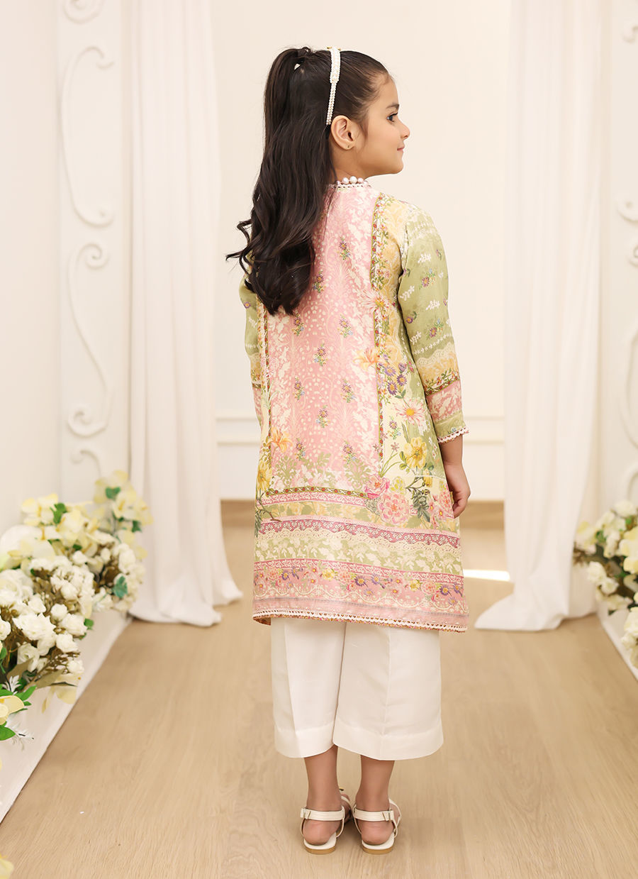 Irresistibly romantic florals, luxe fabrics and captivating details for the ultimate wardrobe reset!! This pale pink and light green floral printed raw silk angarkha for young girls is an enchanting fusion of tradition and playful elegance.The soft pastel hues of pale pink, ivory and light green are adorned with delicate floral prints, evoking a fresh, feminine charm perfect for festive occasions. The angarkha's distinctive design, with its overlapping front, creates a flattering silhouette while maintaining a youthful, spirited look. The intricate floral detailing enhances its beauty, making it an ideal choice for young girls who want to stand out with grace and elegance.