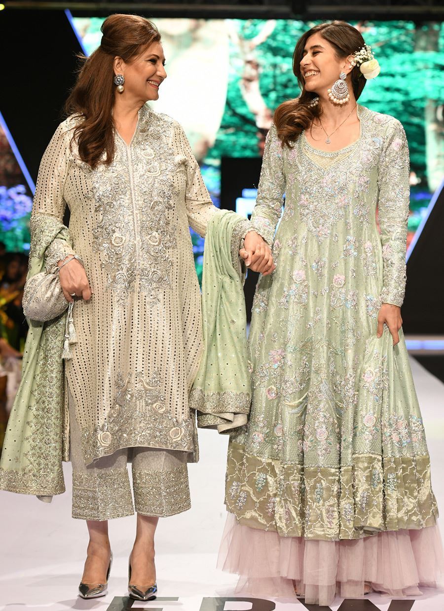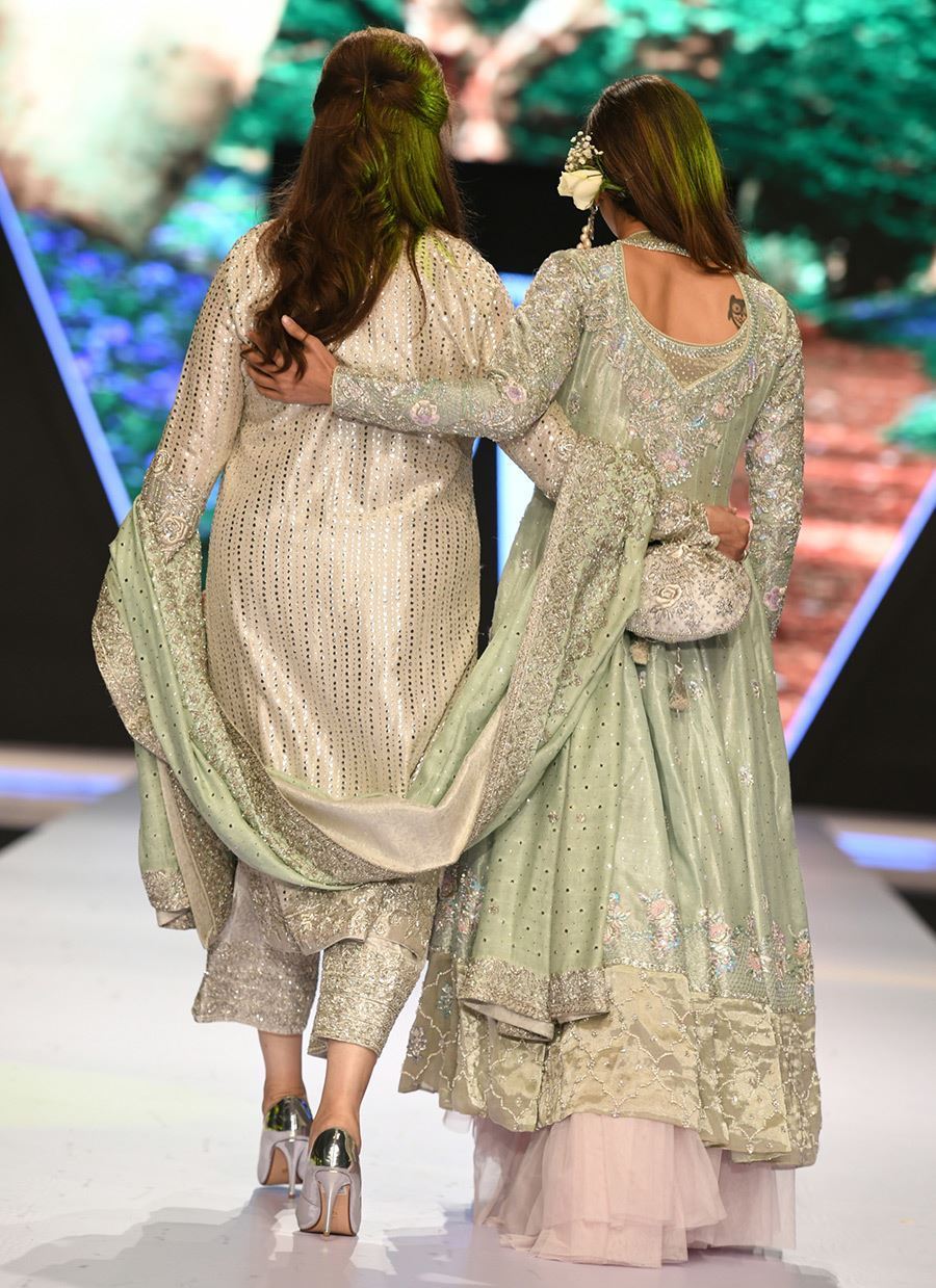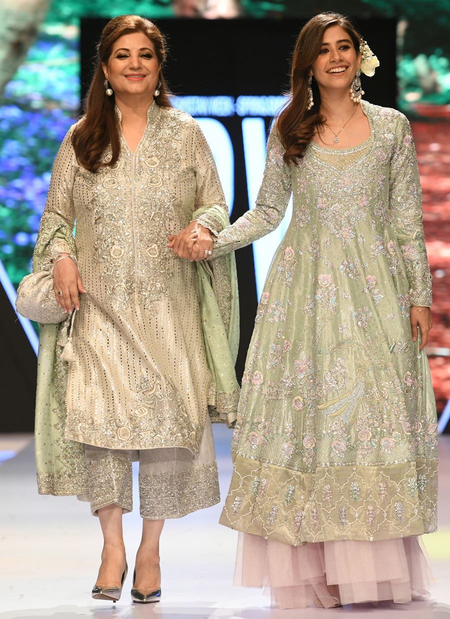 Aqua zari cotton peshwas featuring resham, salma dabka work and embellished with floral embroidery.