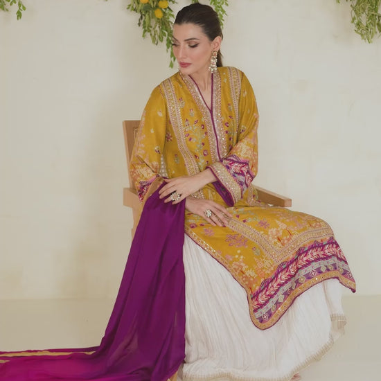 Wear it to your next festivity with our pure raw silk pants and gold khussas for an elegantly striking look