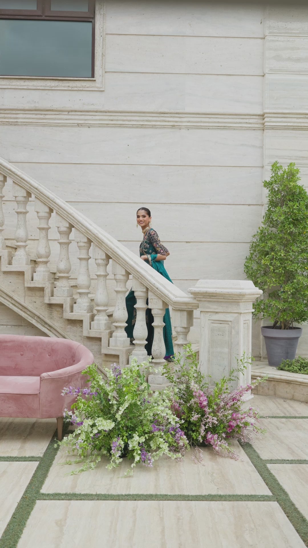 An ode to grandeur of times past, this teal kalidar captures the poetry of tradition in every detail. Jewel-toned appliqués and delicate handwork of kora, dabka, and resham embroidery dance across its flowing silhouette, while the self-jamawar sleeves shimmer with an intricate handworked jaal. A contrasting dark blue jamawar bustier peeks through, adding depth and quiet boldness. Paired with a net dhaka edged in an exquisitely embellished border and completed with a katan dupatta kissed with sequins, the ensemble is a study in timeless grace. Effortlessly regal, endlessly unforgettable.