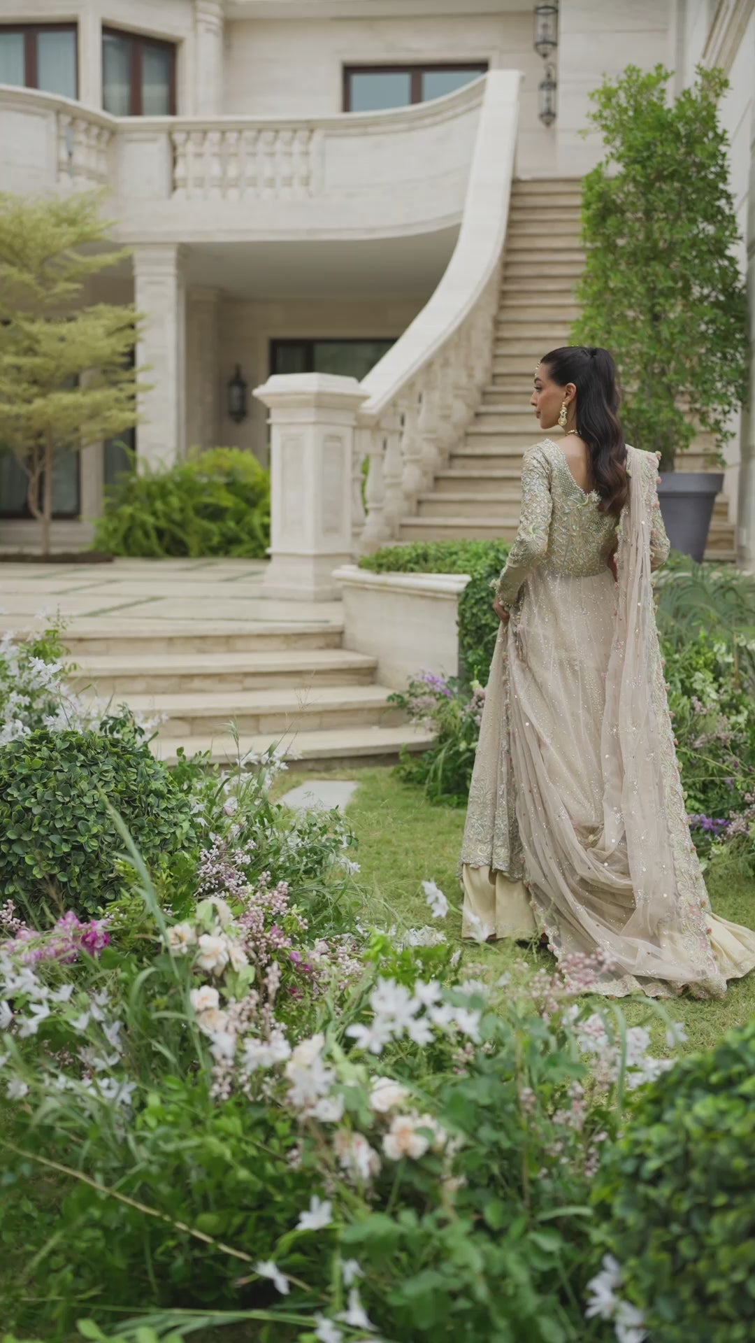 • Kalidaar adorned with dabka, zari, sequins, stones, mukaish, and resham thread embroidery