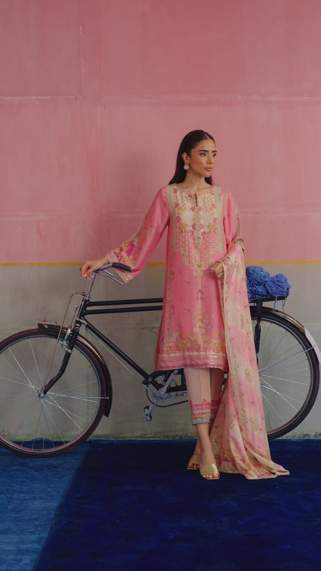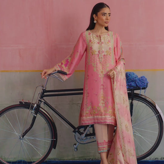 A pure medium silk, printed dupatta completes the ensemble. The contemporary, flattering silhouette is infused with effortless cool-girl charm, designed to have your heart swooning. Embrace the understated elegance of the design by pairing it with pure silk shalwar (as shown) for a polished, timeless look.
