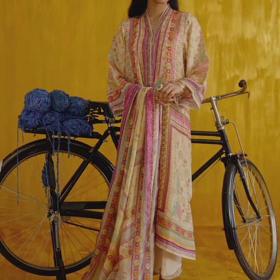 A perfect harmony of unmissable accents and relaxed sophistication, this off-white raw silk shirt is patterned with delicate blooms and paisleys for a romantic yet modern finish. Striking embroidery in fresh shades of pink, coral, and green adds vibrance to the neckline, while the contemporary, flattering silhouette captures effortless cool-girl charm. Style it with pure silk pants and a sleek high ponytail to spotlight the beautifully detailed neckline — a whimsical, eye-catching look for any occasion.