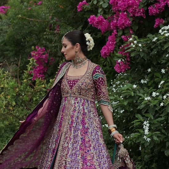 Laden with heavy sequins and lavishly handworked borders, the striking net dupatta completes this bridal ensemble with undeniable glamour.